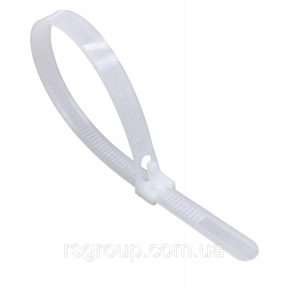 Кабельна стяжка багаторазова 8х300 (7.6*300 мм) біла (1пач -100шт.)